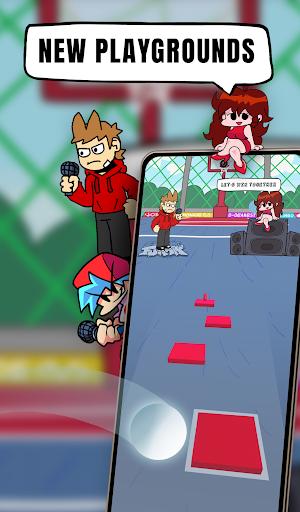 2- Swipe on the screen to control the jumping ball on the colored tiles, hop ball on them and control carefully and enjoy the friday night funkin mod Playgrounds and beats !