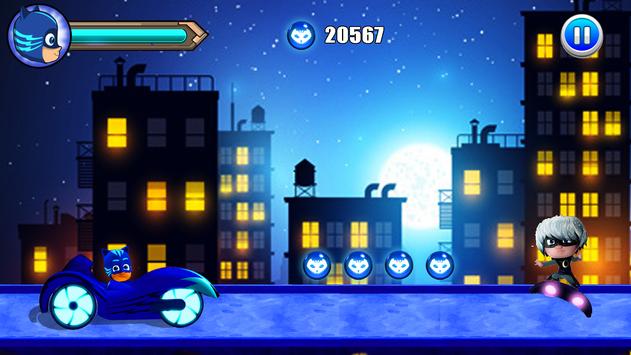 In this pj racing masks Adventure game, you have to help the amazing Pj Super racing Masks Run to exceed all levels.