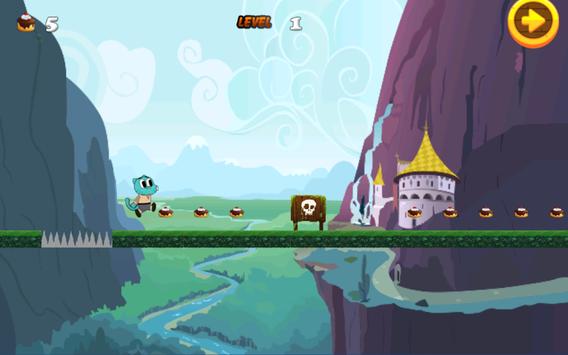 Super Gumballl Hero with simple Game play, the game will bring you the real entertainment moments. You have to run and jump to build your experience, collect gold to unlock awesome new darts, armors and weapons as you chase the high score on the leader board.