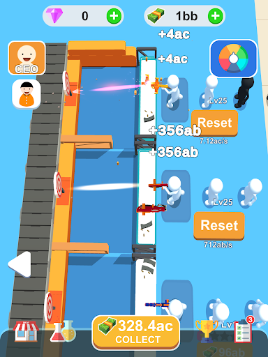 Mulakan dengan sasaran menembak pertama.Menarik tetamu untuk mengalami menembak.Anda boleh mendapatkan faedah daripadanya.Meningkatkan sasaran menembak dengan pendapatan untuk memberi tetamu pengalaman yang lebih baik.Kemudian anda boleh membeli beberapa sasaran baru untuk mengembangkan kedai anda.Pengembangan berterusan sehingga anda menjadi hartawan medan menembak.