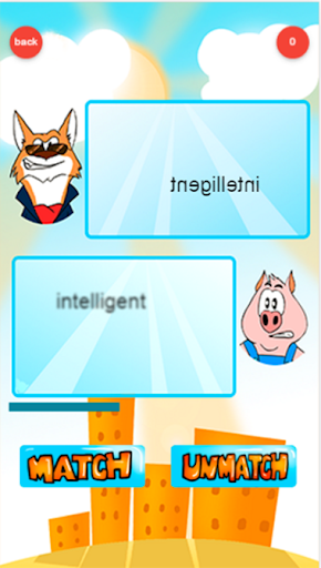 Miroword adalah permainan yang menarik di mana anda akan diberikan dua perkataan yang sama, perhatikan satu bahagian adalah imej yang dicerminkan hanya memberi tumpuan dan memutuskan sama ada kedua-dua bahagian yang dipadankan atau tidak dalam had masa.Aplikasi ini akan meningkatkan perbendaharaan kata serta perhatian, kewaspadaan dengan keseronokan keseronokan