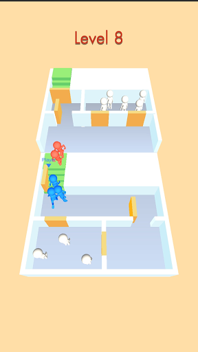 Permainan yang baru melarikan diri.Anda adalah lelaki biru yang ingin sampai ke tangga hijau di hujung tahap.Pilih pintu yang betul untuk membuka, menyertai lebih banyak lelaki putih untuk memperkasakan pasukan anda.Cuba tumbuh pasukan anda lebih cepat daripada pasukan Red Man.Setelah bertemu dengan lelaki merah, anda perlu mempunyai ahli pasukan yang cukup untuk mengalahkan mereka.
