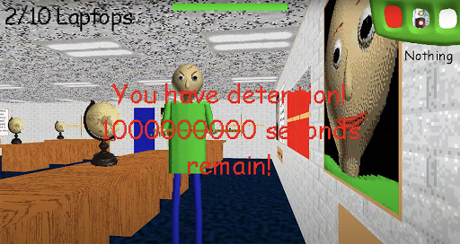 this mod cannot beat this. i will be do make baldis easy mod basics. maybe but im not going baldis mod basics mods anymore. also trying to collect the 10 laptops then get the exit to win also baldi will never make hacks again.