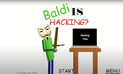 OH NOES!!! Baldi is Hacking! but why is he hack? Because he is useing laptop for hack. i have no idea but this is getting so terrifying and it's hard...
