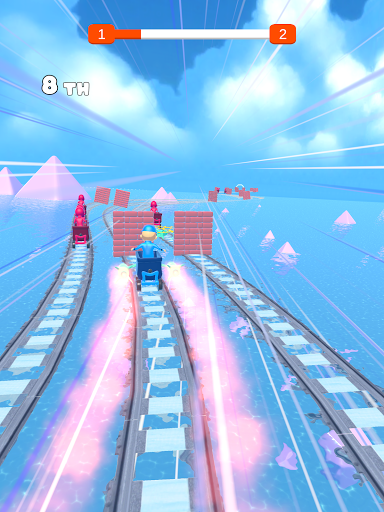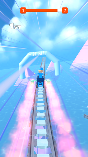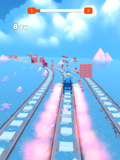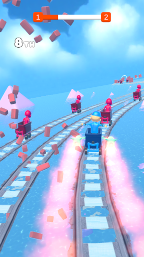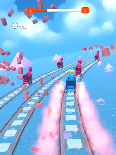 Dalam permainan ini, anda perlu sampai ke garisan penamat terlebih dahulu, sambil mengelakkan halangan, mengambil penggalak, dan cuba untuk tinggal di rel!Berhati-hati!