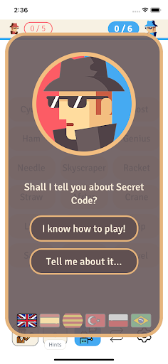 Hanya pasukan Spymaster dapat melihatnya warna kad (kod rahsia) apabila menekan kedudukan butang kod rahsia di bahagian kiri bawah skrin.