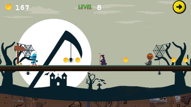 You are the only survival smurfs who can deal with the other zombies which walk around all over the village, kill the endless zombies by jumping over them.