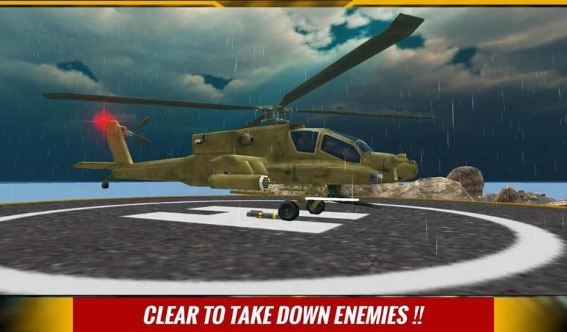 Enemy patrolling their military bases driving army style trucks, jeeps and tanks in raining and storm weather take precise aim shoot to destroy them all. Enjoy flying super realistic apache military helicopter on top secret combat missions around tropical islands.