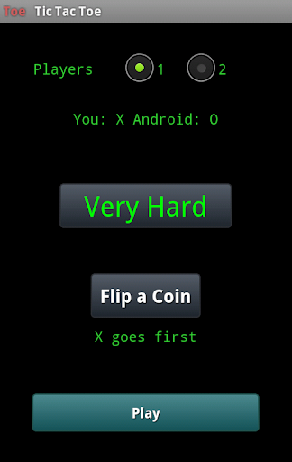 Permainan Tic Tac Toe untuk 1 atau 2 pemain dengan pelbagai tahap kemahiran.