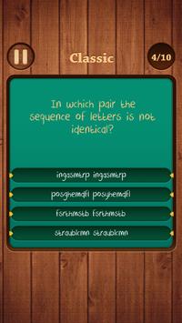 HOW TO PLAY: launch the app, choose a question category (classic, what’s essential, numbers, phrases), read the question and try to choose the right answer out of four below. Get to know your result in the end! Good luck!