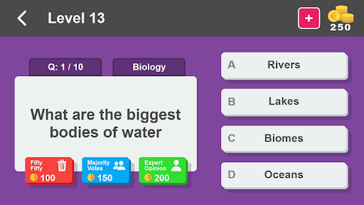 Induk Trivia adalah permainan kuiz pilihan berganda. Permainan ini mengandungi lebih daripada 20000 soalan pengetahuan umum, dikategorikan dalam 60 kategori. Setiap kategori mengandungi bilangan tahap yang berbeza dan setiap peringkat mengandungi 10 soalan yang unik. Untuk membersihkan tahap anda mesti menjawab semua soalan dengan betul.