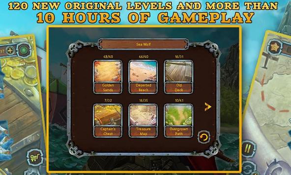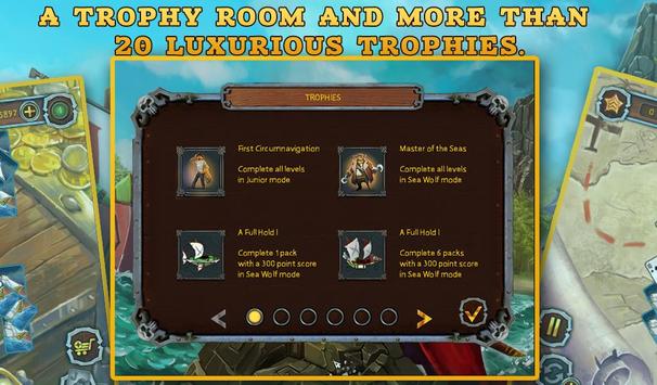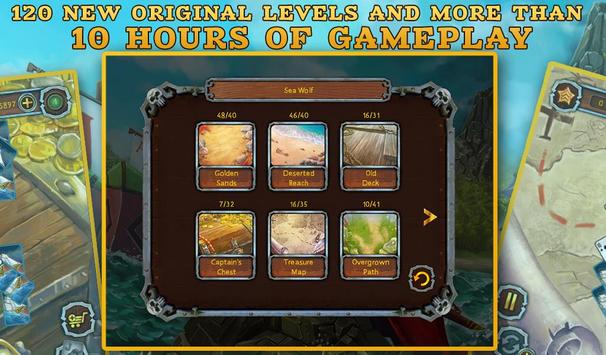 Find gold cards in each of 120 games of solitaire, get real pirate trophies and enjoy entertaining gameplay! Use a multitude of bonuses, hints and helpful tools. Choose your difficulty and play in comfort. Premium graphics and more than 10 hours of gameplay to jolly pirate melodies!