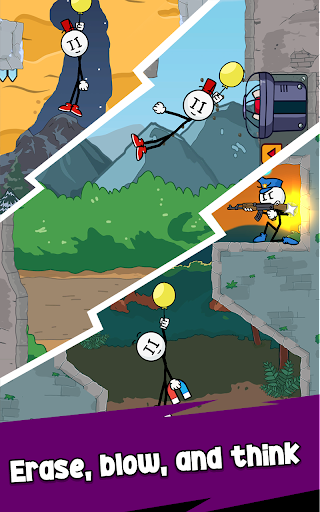 ⚡️ With his balloon, the stickman loves to go to the highest places in the world. 👉 Erase, rotate, blow, explode, move and think... to help stickman get higher and higher. Try not to hit the cliff if you want to win.