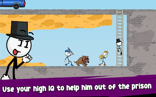 😅The stickman became a gangster boss and robbed a bank. 😅 No longer a hero, the stickman has now stolen a lot of treasures from the bank. After breaking into the Bank, the mischievous Stickman is arrested by the police and placed in prison. Use your high IQ to help him out of the prison.