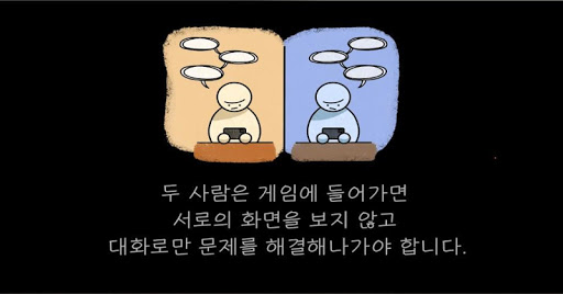 Dua pemain mempunyai dua pemain untuk memilih bilik-bilik lain, dan menyelesaikan hanya petunjuk dalam perbualan tanpa melihat skrin masing-masing