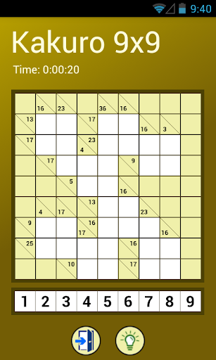 Teka-teki Kakuro adalah sama dengan silang kata, tetapi bukan huruf papan diisi dengan digit (dari 1 hingga 9).