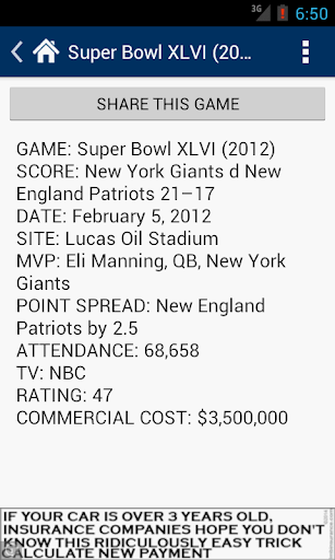 * Cari butiran seperti kos komersial 30 saat, MVPS, kehadiran di permainan dan apa yang Super Bowl Cities