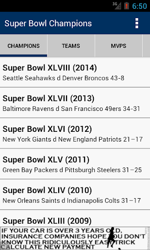 * Cepat melihat mana-mana juara Super Bowl - tidak lebih menggaruk kepala anda, yang memenangi Super Bowl VII?