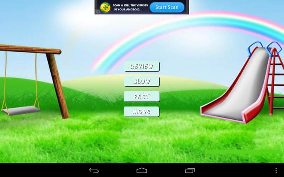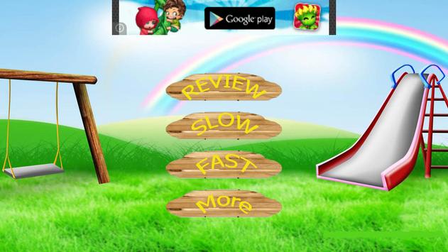 Each of lesson you can review all firstly for learning then you can play two games with slow and fast speed.