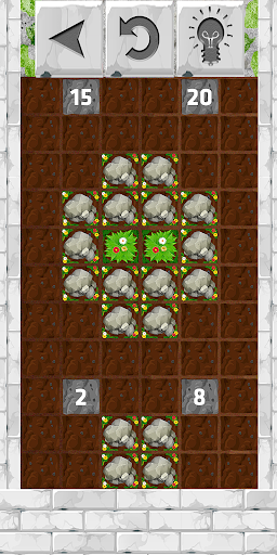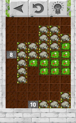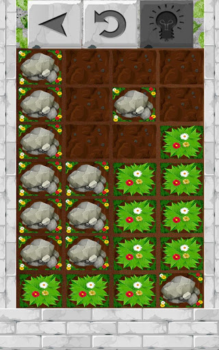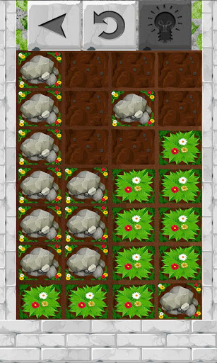 GREENING is a brain teaser game in which players have to discover the right way to grow plants on all soil pieces. The soil pieces are arranged alternately with the rocks that make players feel challenging because of the zigzag maps. Players only can start from a point and must go in a straight line translationally.