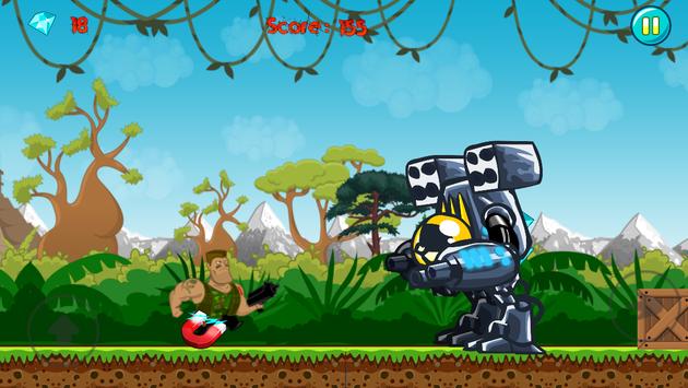 All you have to do is to keep running and gun shooting to kill your robot enemies in this modern gun war. Use the jump button on the right of your screen to make your universal soldier jump and shoot button to kill the robot enemies. This military war adventure game is endless, go as far as you can to score as high as possible. Don’t forget to collect the diamonds in your way through.