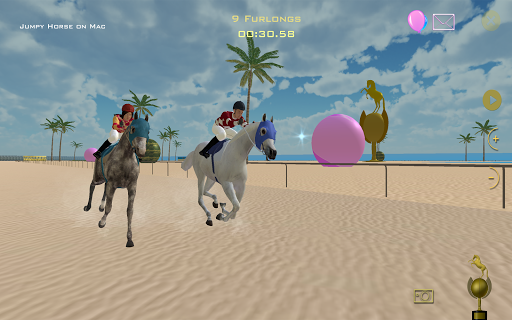 Selamat datang ke Jumpy Horse Racing Salah satu kuda terbaikPermainan perlumbaan di luar sana.Di sini anda boleh melatih dan berlumba-lumba yang cantik dan kuda Arab untuk memenangi emas.Pilih dari 4 trek yang berbeza untuk berlumba dan berlatih.Berbual dengan pemain lain dan sediakan perlumbaan awam atau swasta untuk bersaing dengan rakan-rakan.Anda juga boleh menghantar kuda dari permainan pembiakan kuda yang berlumba juga.