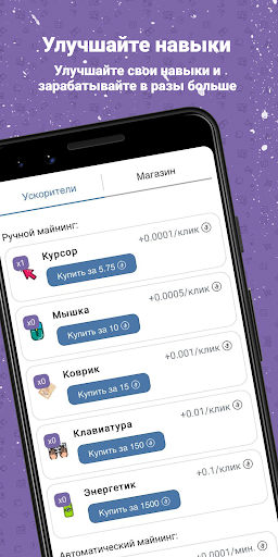 Покупайте улучшения, что бы зарабатывать можно было ещё быстрее!