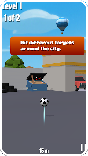 Kick the ball against different targets around the city. Play in several modes: - Arcade - Timed levels - Max hits in a minute - Limited balls