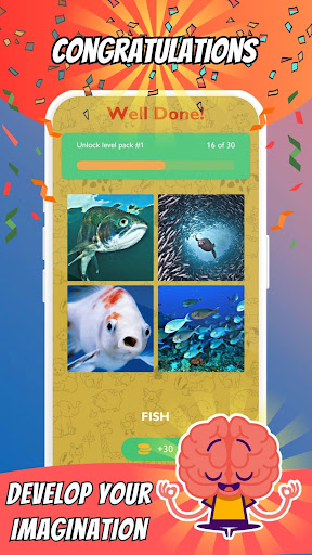 ✓ Setiap teka -teki mengandungi empat gambar yang mempunyai satu perkataan yang sama.Mainkan beratus -ratus teka -teki yang menjadi lebih mencabar ketika anda maju.Lebih banyak teka -teki yang boleh anda selesaikan, lebih banyak tahap yang akan anda buka kunci.