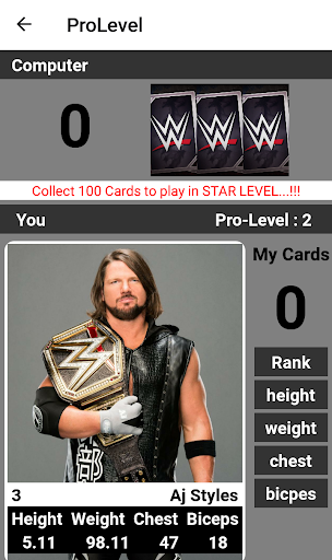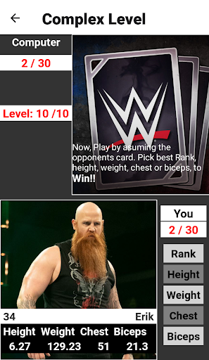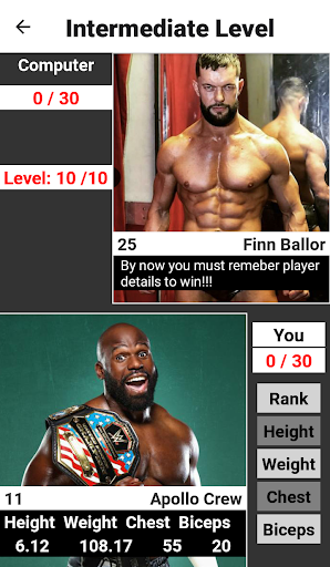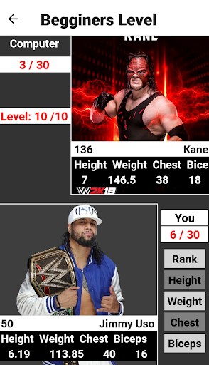 - Player have to pick the best Rank, Height, Weight, Chest Size or biceps of player to win.
