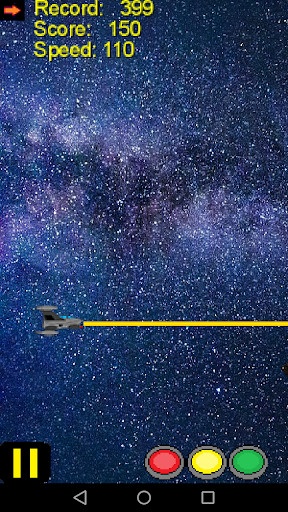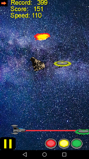 You have three lasers with different colours with which you have to match the color of the enemy spaceship to be able to destroy them, touch the screen to "jump" and also to be able to dodge the asteroids, if you crash into an asteroid or let one of the enemy spaceships pass you lose.