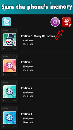 Dalam permainan Cari Perbezaan ada masalah dengan jumlah perbezaan yang berbeza. Sekiranya anda menyelesaikan episod, anda boleh menghapusnya dari telefon anda untuk mengosongkan ruang pada memori telefon atau tablet anda.