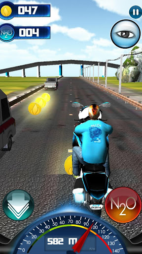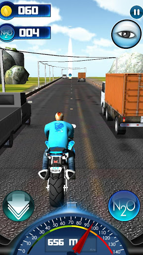 Traffic Biker is an endless racing game. Ride your bike in the endless highway or city roads overtaking the traffic and avoid running into other vehicles. Upgrade and buy new bikes,nitro,magnet to travel more distance.