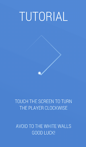Tap on the screen to change the player's direction by 90 degrees clockwise. Try to evade the white walls.