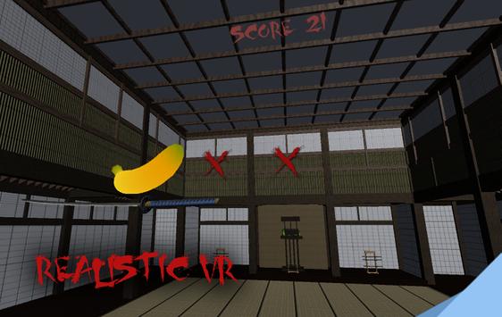 - You are placed into a 3D / VR / 360 degree game where you must act as a ninja, and swing your sword to slice all of the fruit that is thrown at you before it proceeds to hit the ground.
