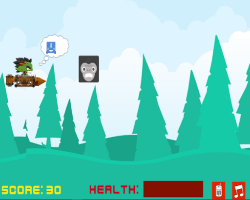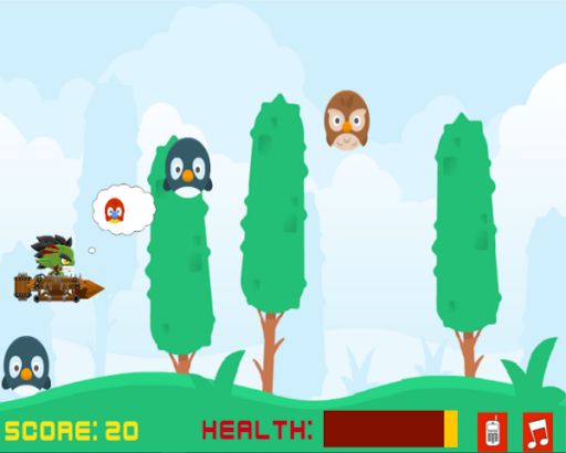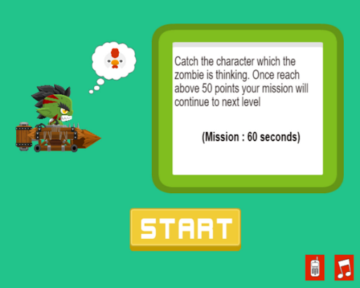 A hungry Zombie has finally built his flying vehicle to travel throughout the country to seek its meal. Help the Zombie by catching the animal or bird he is thinking about. Avoid collision or else the zombie health will get weaker. Collect above 50points to continue to the next level. You are given only 60seconds to complete each mission.