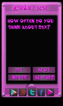 Multiple questions and challenges will probe you psychologically for any lesbionic urges you might not know about. Test yourself today and see if you measure up to lesbian standards.