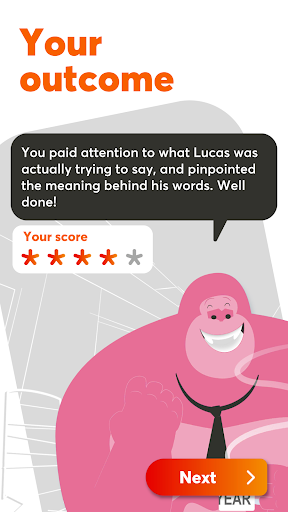 You are challenged to show your leadership skills in different ways. In some episodes are multiple choices with forecasting, in other episodes are audio dialogues and in some episodes you have to choose a strategy. Other episodes stimulate you to reflect and to practice in real life situations. After playing an episode you get feedback on your performance.