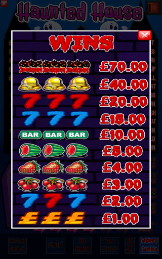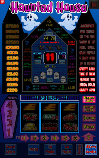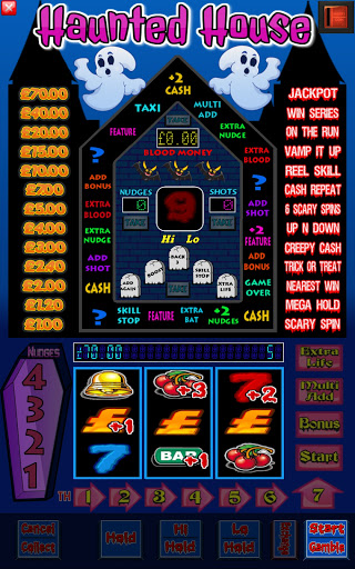 Mesin buah Haunted House adalah permainan mesin buah gaya UK yang menyeramkan, yang menampilkan grafik bertema halloween dan banyak kesan bunyi dan muzik yang menghantui.