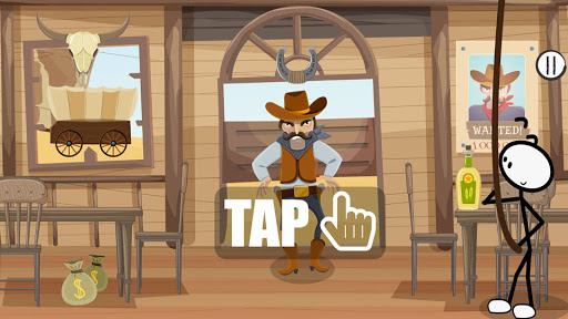 Anda akan bermain Stickman dengan Cowboys di Wild West.Watak utama anda pergi ke bar untuk membasahi tekaknya dengan wiski masam.Semuanya baik-baik saja, sehingga penjenayah yang dikehendaki dan berbahaya menghalangi anda.Tugas anda adalah mencari semua cara yang berjaya untuk melarikan diri dari bar, jika tidak, masalah serius menanti anda.Permainan ini akan mempunyai beberapa item untuk dipilih, difikirkan dan dipilih.Grafik yang indah dan animasi yang menyenangkan akan menyenangkan mata dan otak anda.Dalam perjalanan anda akan menemui pasir panas, kaktus, naik kereta api, tembakan dan letupan dinamit.