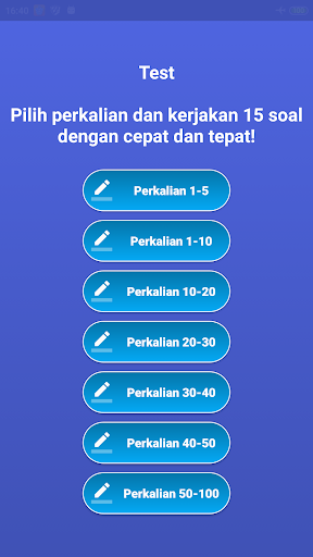 Selain itu aplikasi perkalian ini juga menyediakan sebuah game atau quiz untuk melatih kemampuan perkalian anda, setelah anda menghapal perkalian anda bisa mencoba mengetes atau menguji kemampuan hapalan perkalian anda dengan bermain game perkalian.