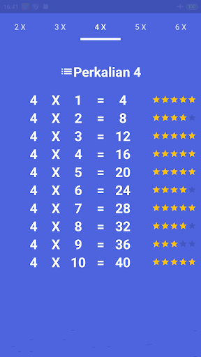 Anda juga bisa mengontrol dan meninjau kemampuan perhitungan dan hapalan perkalian anda melalui informasi pencapaian, jika setiap perkalian dapat anda selesaikan dalam waktu yang cepat, maka anda akan mendapatkan bintang 5 yang artinya anda lulus, namun jika anda menjawab perkalian dengan waktu yang lambat, maka anda bisa mendapatkan poin kurang dari 5 yang artinya anda belum terlalu hapal untuk perkalian yang dimaksud.