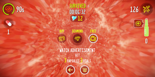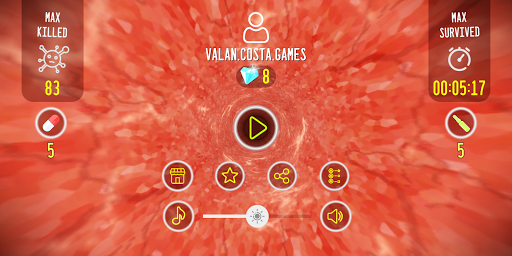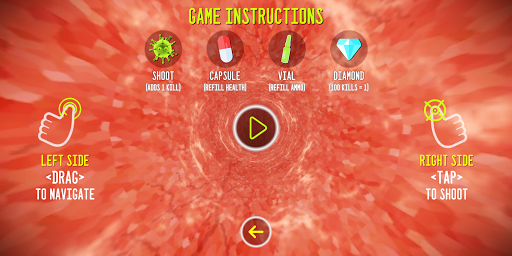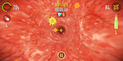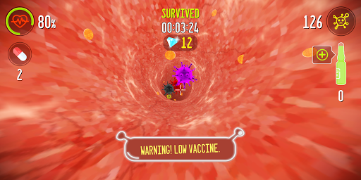 A VIRTUAL JOURNEY INTO YOUR INNER SPACE. SHOOT VIRUSES INSIDE YOU. MANAGE VACCINES / CAPSULES FOR YOUR SURVIVAL. EARN DIAMONDS FOR YOUR KILLS. LEAD YOUR KILLS & SURVIVAL.