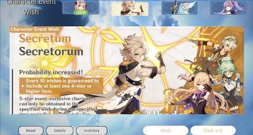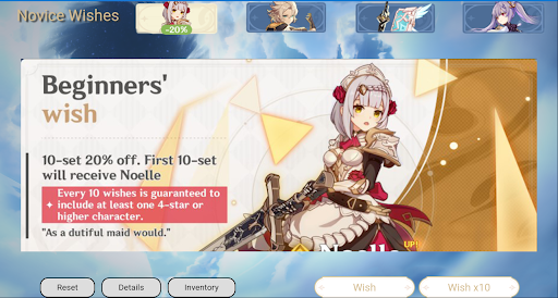 A fan-made unofficial wish simulator for Genshin Impact. You can choose banners for wishes and you can see how much money and primogem required to those wishes. Also it's free.