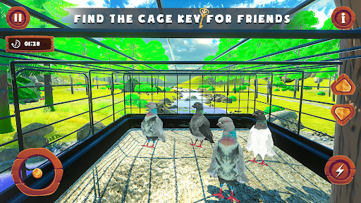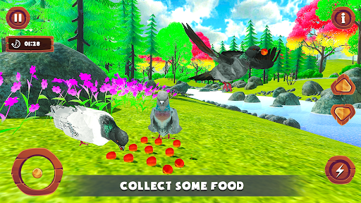 Dalam permainan ini yang menyerupai penerbangan burung, merpati liar terbang melalui langit di Pencarian makanan di pelbagai lokasi di dalam hutan.