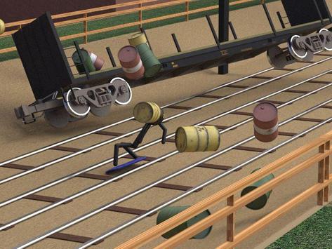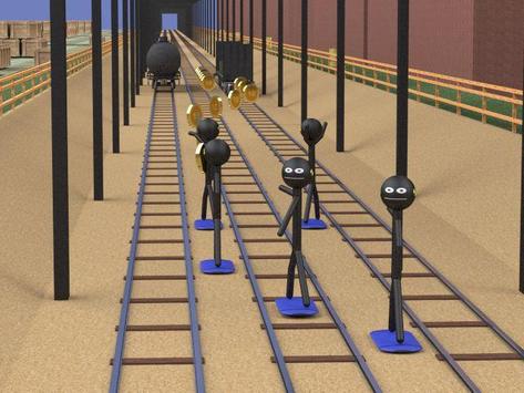 The stickmen chase, run, rush, dodge and dash oncoming trains, etc.