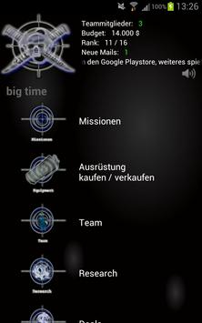 Completly free massive multiplayer online game (mmog). You become the leader of a terror or anti terror team. Recrute new team member, train, equip and send them on missions against your friends and other player teams. You only have to plan the mission, the result of a mission is sent to you by an ingame message. To win the game you have to research your team equipment and build a base for benefit. Play against other players all over the world. An internet connection is required to play this game. No registration needed, only enter a team name and chose a team kind at start.