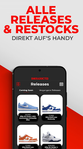 Dengan aplikasi sneaker dari snraddicted anda mendapat semua siaran kasut, restock dan kasut panas lain & amp;Streetwear terus di telefon bimbit anda!Kami juga menyiarkan koleksi streetwear terbaik dan jualan kasut.