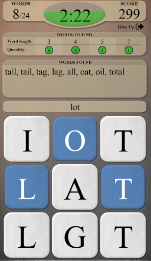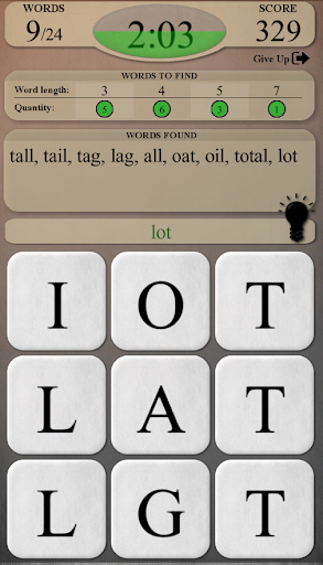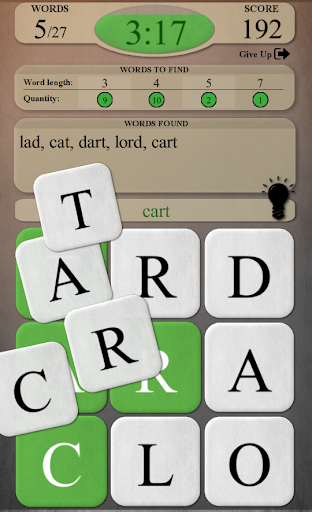 - Cari semua perkataan tersembunyi di papan dengan penggunaan huruf yang tersedia .