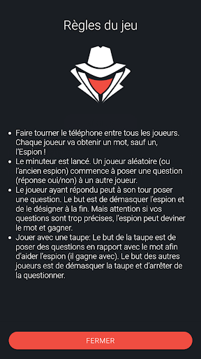 - Pemain yang menjawab boleh memilih pemain dan bertanya kepadanya.Matlamatnya adalah untuk membongkar pengintip dan menunjuknya pada akhir zaman.Tetapi berhati-hatilah jika soalan anda terlalu spesifik, mata-mata boleh cuba meneka perkataan dan menang.